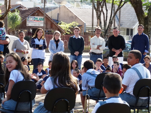 Vereadores Gabriel, Nei, Toninho e Jebson acompanharam a apresentação Além do Sonho, na praça da Prefeitura.