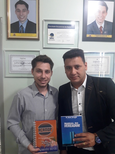 Na tarde do dia 20/12 o assessor da ACAMOP Enéias, esteve na Câmara entregando em mãos ao presidente Gabriel as agendas 2018 e o manual do vereador.