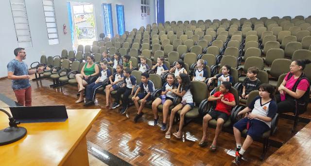 Na tarde de quarta-feira (11) os alunos do 3º ano período da tarde estiveram conhecendo juntamente com suas professoras o funcionamento do Legislativo municipal, sendo orientados pelo Assessor Fabiano Bettinelli.