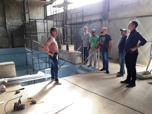 Presidente da Câmara e vereadores vistoriam obras de conclusão na piscina da 3ª idade.