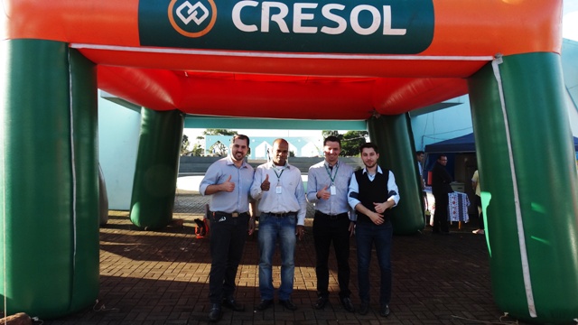 Presidente Gabriel Cadini com a equipe do Banco Cresol de Matelândia, que juntamente com a ACIMA esteve responsável pelo Feirão de Negócios.