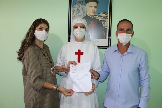 Os vereadores Uni e Andréa estiveram com a irmã Francisca, comunicando o envio de 180 mil reais do deputado federal Fernando Giacobo, para compra de insumos para o hospital.
