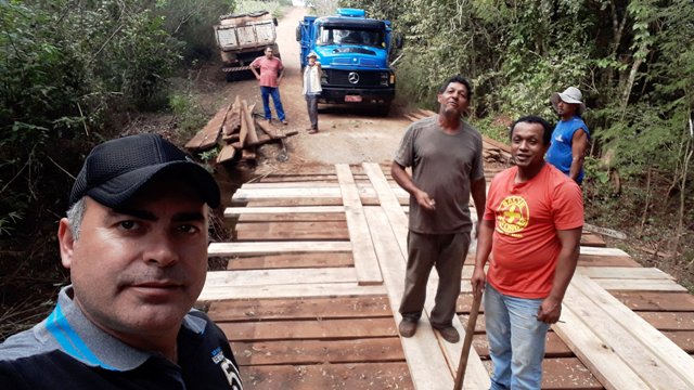 Sexta feira o vereador Aldair esteve ajudando a reformar ponte em Marquesita, sobre o Rio Taquara . E bueiro na comunidade do Bento Munhoz.