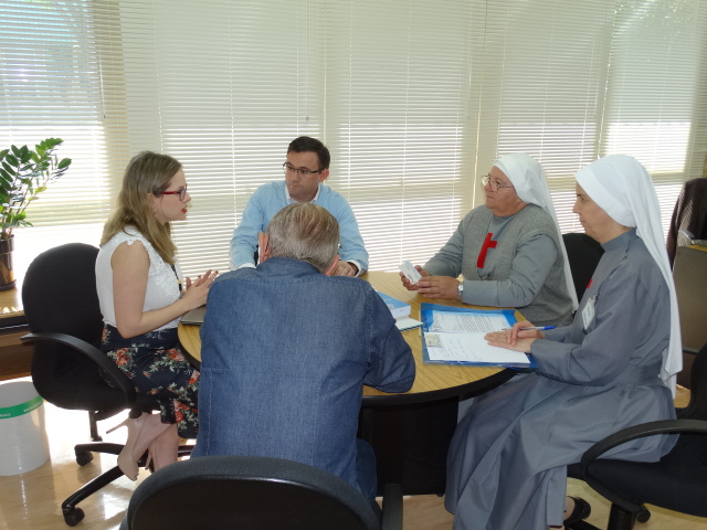 Na oportunidade, as irmãs e o padre entregaram ofícios solicitando auxilio para o Hospital e Maternidade Pe. Tezza e para a Escola Piamarta.
