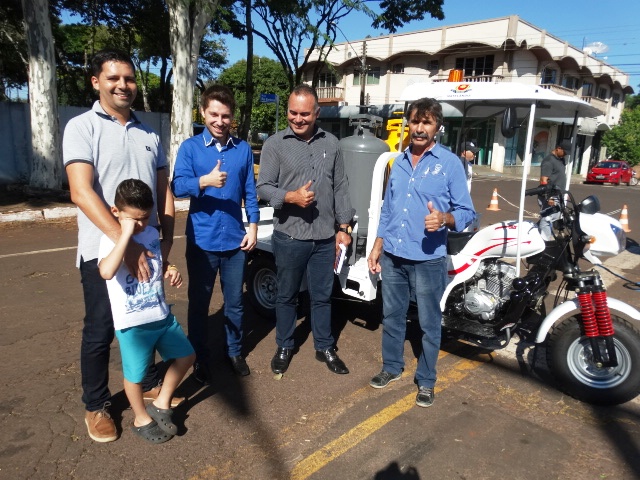 Vereadores acompanham entrega de triciclo para pinturas de trânsito em Matelândia.