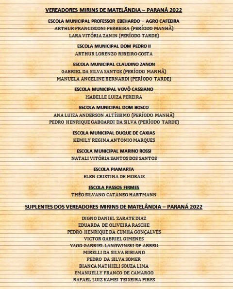 Vereadores Mirins eleitos em 25 de março.